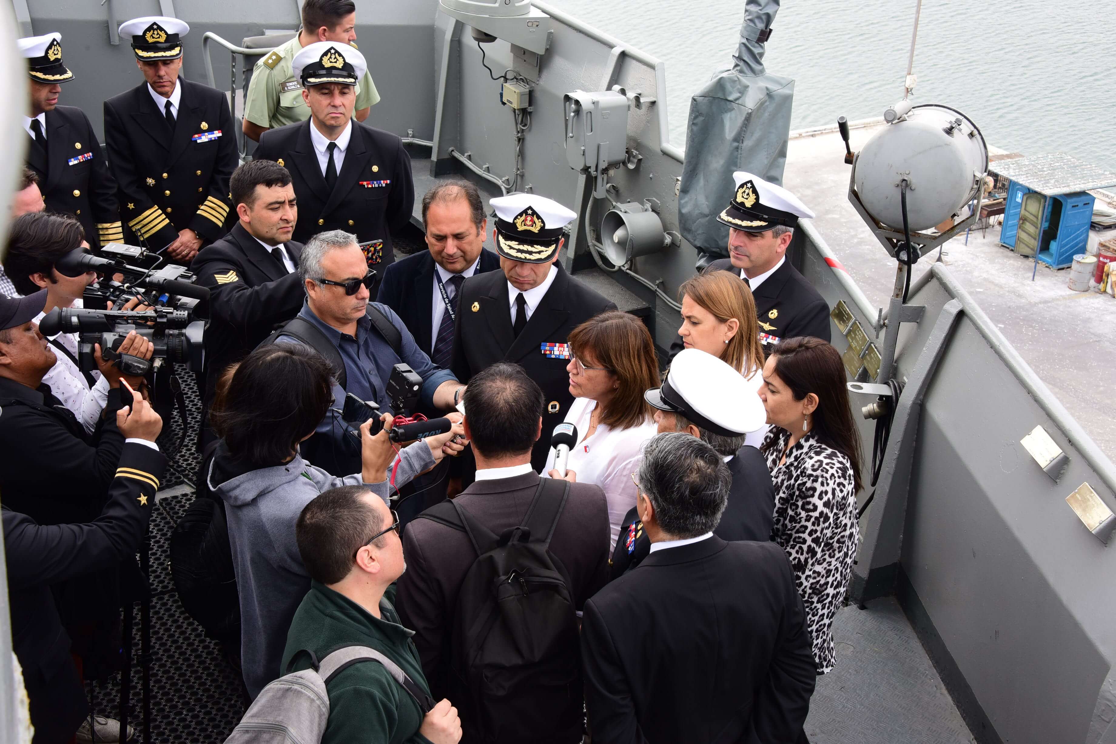 La intendenta de Arica y Parinacota, María Loreto Letelier; el director del Servicio de Salud Arica (SSA), Cristian Quispe; la Subdirectora de Gestión Asistencial del SSA Magdalena Gardilcic y la Seremi de Salud Claudia Torrealba, acompañados del Comandante de la Cuarta Zona Naval Alberto Soto y del director ejecutivo de la Fundación Acrux, Roberto Levín, realizaron una visita al área hospitalaria del buque para conocer en terreno el desarrollo del operativo médico.