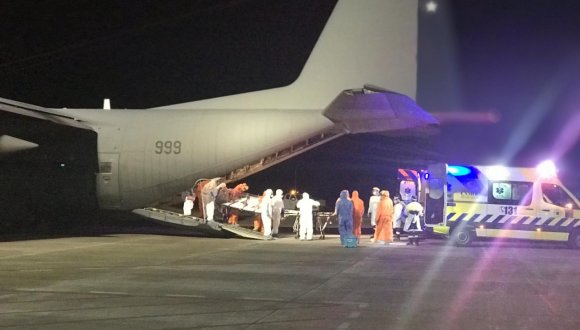 Desde el Aeropuerto Chacalluta, personal del SAMU trasladó a los pacientes a la Unidad de Cuidados Intensivos covid-19 del Hospital Regional de Arica; el traslado desde Calama  obedece a la estrategia del Ministerio de Salud de transformar la red de salud nacional, en una red integrada en la que desde el nivel central se van disponiendo las camas críticas para el uso de pacientes.