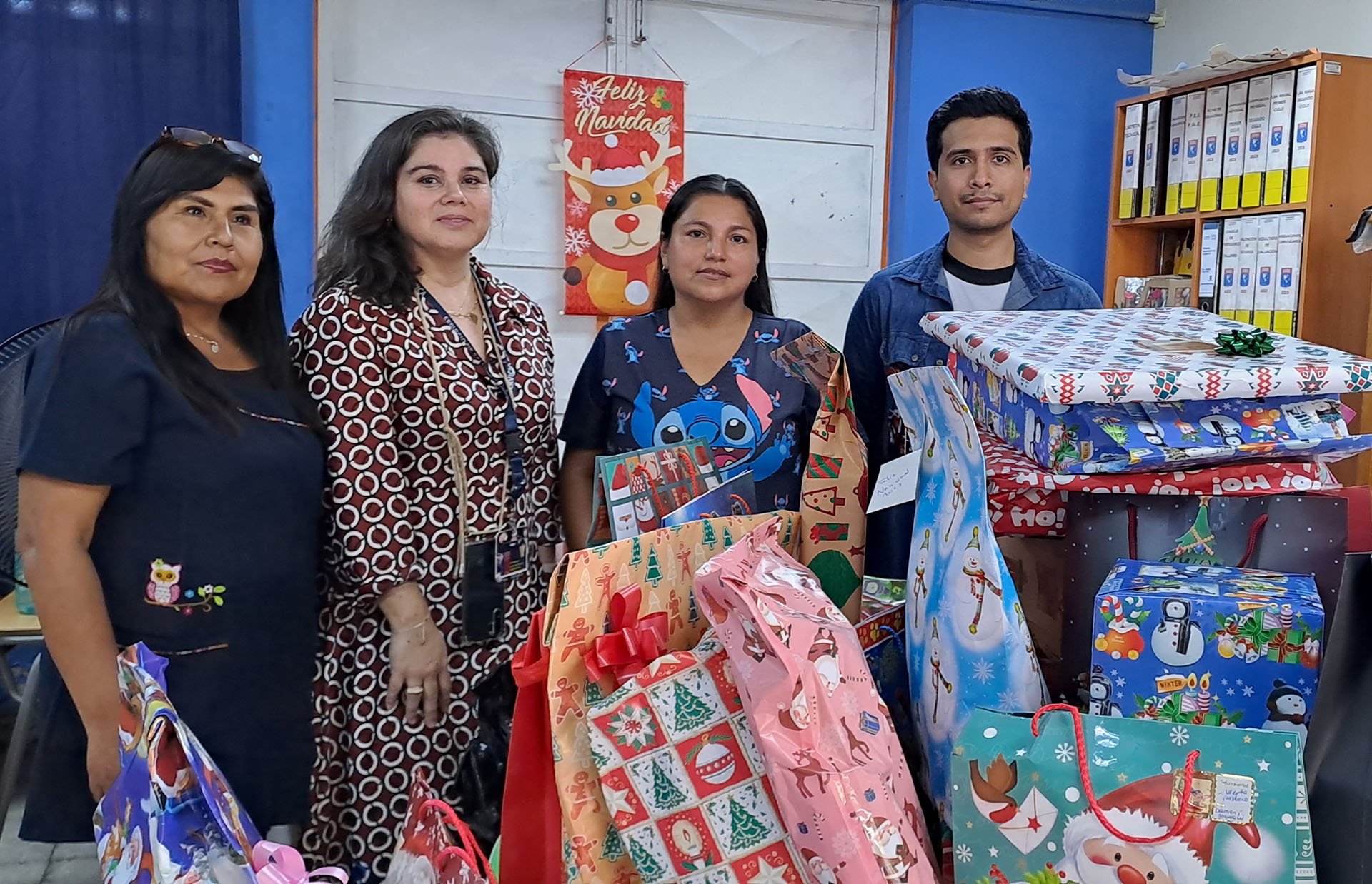 Los representantes de los funcionarios, Julio Vega y Paola Cornejo, hicieron entrega de los regalos a la profesora de la escuela Nataly Quezada, quien agradeció a todos y todas las trabajadores de la institución por tan noble gesto.