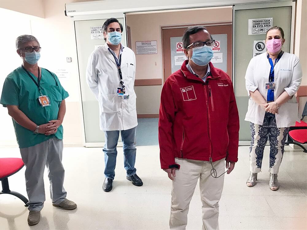 En el recorrido fue acompañado por la directora del Servicio de Salud Arica (SSA), doctora Magdalena Gardilcic, por el subdirector de gestión asistencial del SSA, doctor Luis Vásquez, y por el médico jefe del servicio de UCI-SAI, doctor Hernán Figueroa.
