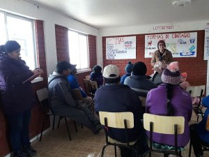 Esta charla, realizada el 11 de julio, en la sede vecinal, fue solicitada por la SEREMI de Salud de Arica y Parinacota, debido a que fue detectada la bacteria que causa la leptospirosis en camélidos y ovinos de dicho sector altiplánico, con el fin de enseñar el modo de prevenir el contagio que usualmente ocurre cuando la orina de estos animales contamina agua para el uso humano.