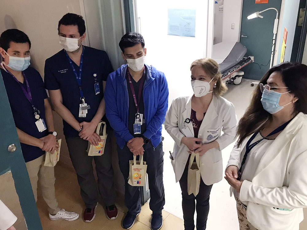 Los médicos especialistas del Hospital Clínico de la PUC son Florencia de Barbieri, Gonzalo Díaz y Pablo Aguilar; quienes trabajarán mano a mano con los imagenólogos del Hospital de Arica Fernanda Uribe y Álvaro Challapa. Todos fueron saludados por la directora (s) del SSA y por la subdirectora de gestión asistencial, doctora Bernardita Coublé.